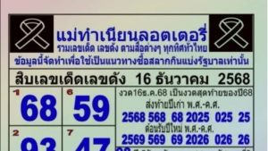 - แม่ทำเนียนลอตเตอรี่รวมโพยเดือด! สืบเลขเด็ดเลขดังงวด 16 ธันวาคม 2568 ชุดสิบเลขเด่น-เลขวันสำคัญมาเต็ม