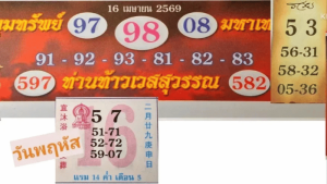 - เลขเด็ดปฏิทินท่านท้าวเวสสุวรรณ งวด 16 เมษายน 2569 เปิดชุดเด่น 2 ตัว 3 ตัว คอหวยห้ามพลาด