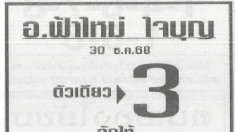 จากสำนัก อ.ฟ้าใหม่ ใจบุญ งวดวันที่ 30 ธันวาคม 2568